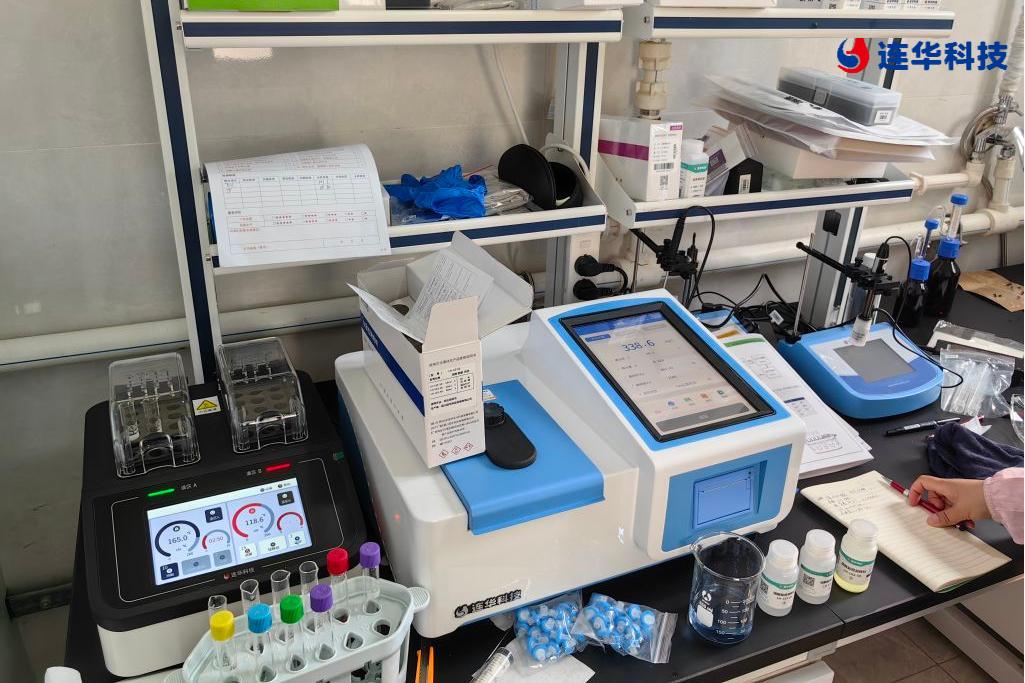 解決辦法:連華科技售后工程師抵達客戶現場后,經過初步的分析判斷,發現水樣顏色影響較高,并且COD超過20000mg/L,氯離子也偏高。水樣經過稀釋后,COD測值穩定,符合誤差范圍,檢測結果為26755mg/L。在進行氨氮檢測時,由于有色度干擾,分別使用納氏試劑分光光度法法和水楊酸分光光度法進行了實驗,使用納氏試劑分光光度法時采用凝絮沉淀法對水樣進行了預處理,但檢測結果依然波動較大,而水楊酸分光光度法測值相對穩定,水樣顏色、干擾物對于檢測結果影響較小。和客戶協商后采用水楊酸法進行氨氮的檢測工作,檢測結果為64.88mg/L。在實驗過程中,售后工程師分別對水樣預處理方法、實驗細節、注意事項進行了詳細的講解與演示,以幫助客戶快速掌握儀器的使用方法與實驗知識。