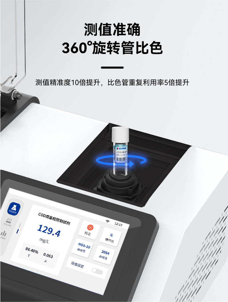 而說到比色,LH-C500更是獨具匠心。它支持360°旋轉管比色模式,不僅提高了測值的穩定性,還能讓比色管得到更充分的利用,降低了實驗配件的成本支出。同時,內置的7吋1024*600分辨率IPS全視角觸控屏,讓用戶在各種環境下都能清晰顯示實驗結果,操作也更加直觀簡單。