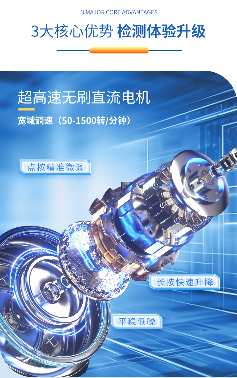 1、強(qiáng)勁動力,無極調(diào)速:50-1500轉(zhuǎn)/分鐘寬幅調(diào)速,點(diǎn)按精準(zhǔn)調(diào)節(jié),長按快速增減,操作更高效;
