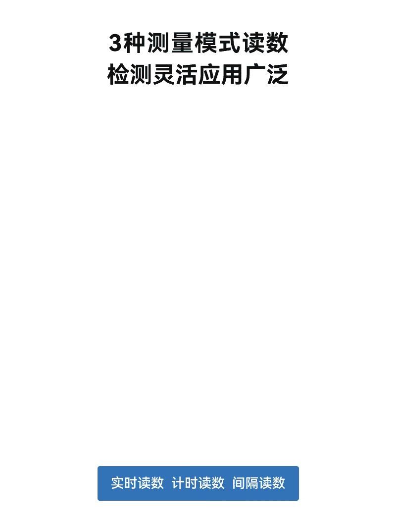 4、內(nèi)置實(shí)時(shí)讀數(shù)、計(jì)時(shí)讀數(shù)、間隔讀數(shù)3種測(cè)量模式讀數(shù),可根據(jù)檢測(cè)場(chǎng)景及需求靈活選擇;